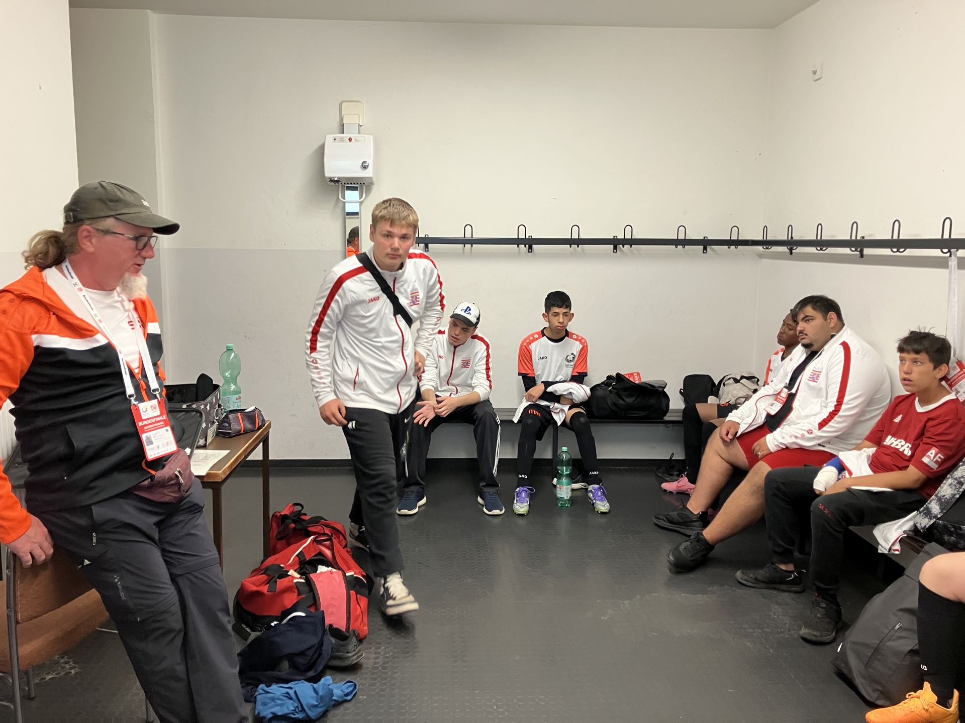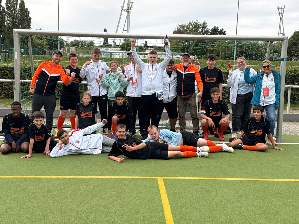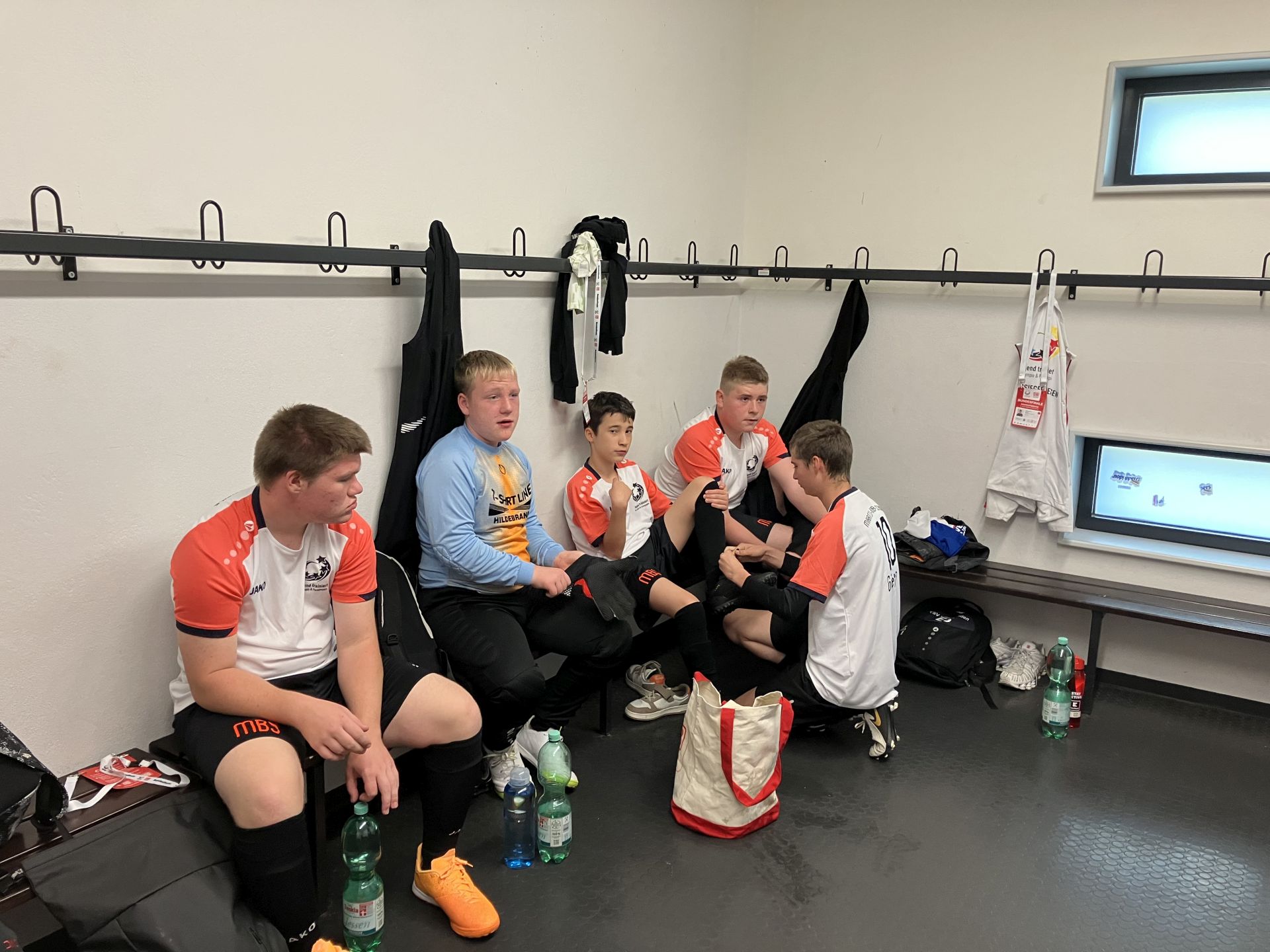 Am ersten Turniertag wurde im „Schweizer System“ die Stärksten acht Bundesländer für die Gruppe A ermittelt. Nach zwei Unentschieden (jeweils 0:0 gegen NRW und Thüringen) und zwei Niederlagen (jeweils 0:3 gegen Bayern und Niedersachen), konnten wir im letzten Spiel das Saarland mit 4:0 besiegen. Die Tore erzielten Leon (2), Max und Tiziano. Die Freude war riesig. Leider gab es auch zwei Wermutstropfen, denn Julian (Kapsel) und Rahul (Handgelenk) verletzten sich und fielen weitestgehend für den restlichen Turnierverlauf aus.