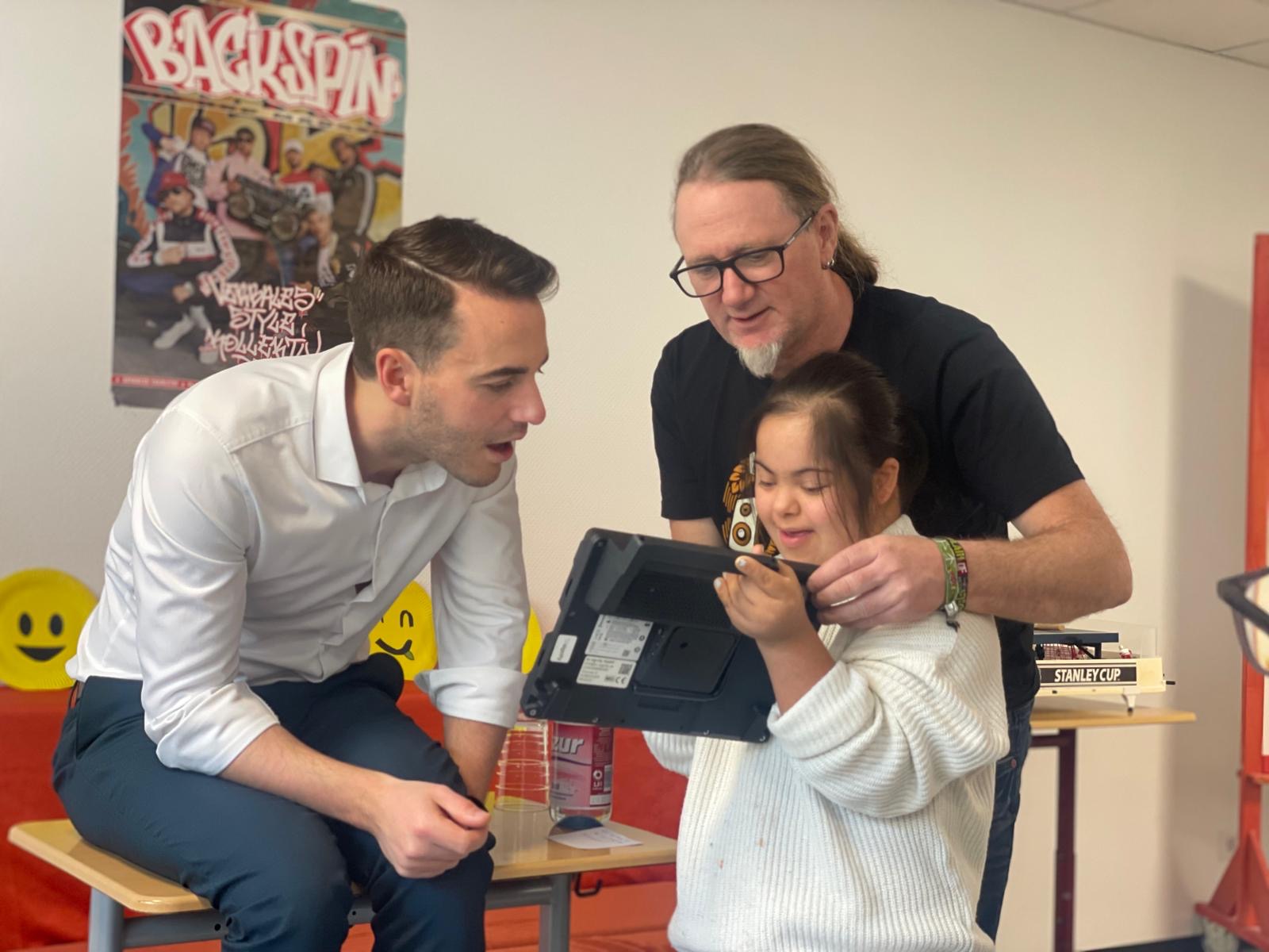 Mit viel Stolz führten die Schülerinnen und Schüler ihn durch die Klassen- und Arbeitsbereiche und erklärten, wie ihr Alltag aussieht und woran sie gerade arbeiten.