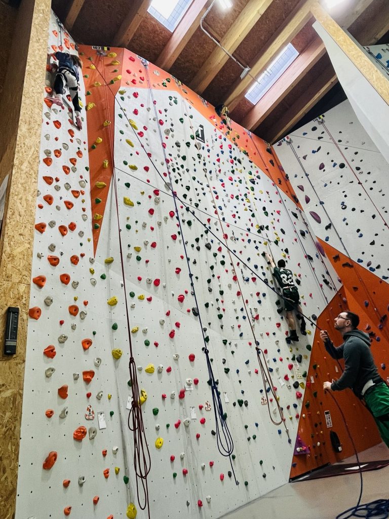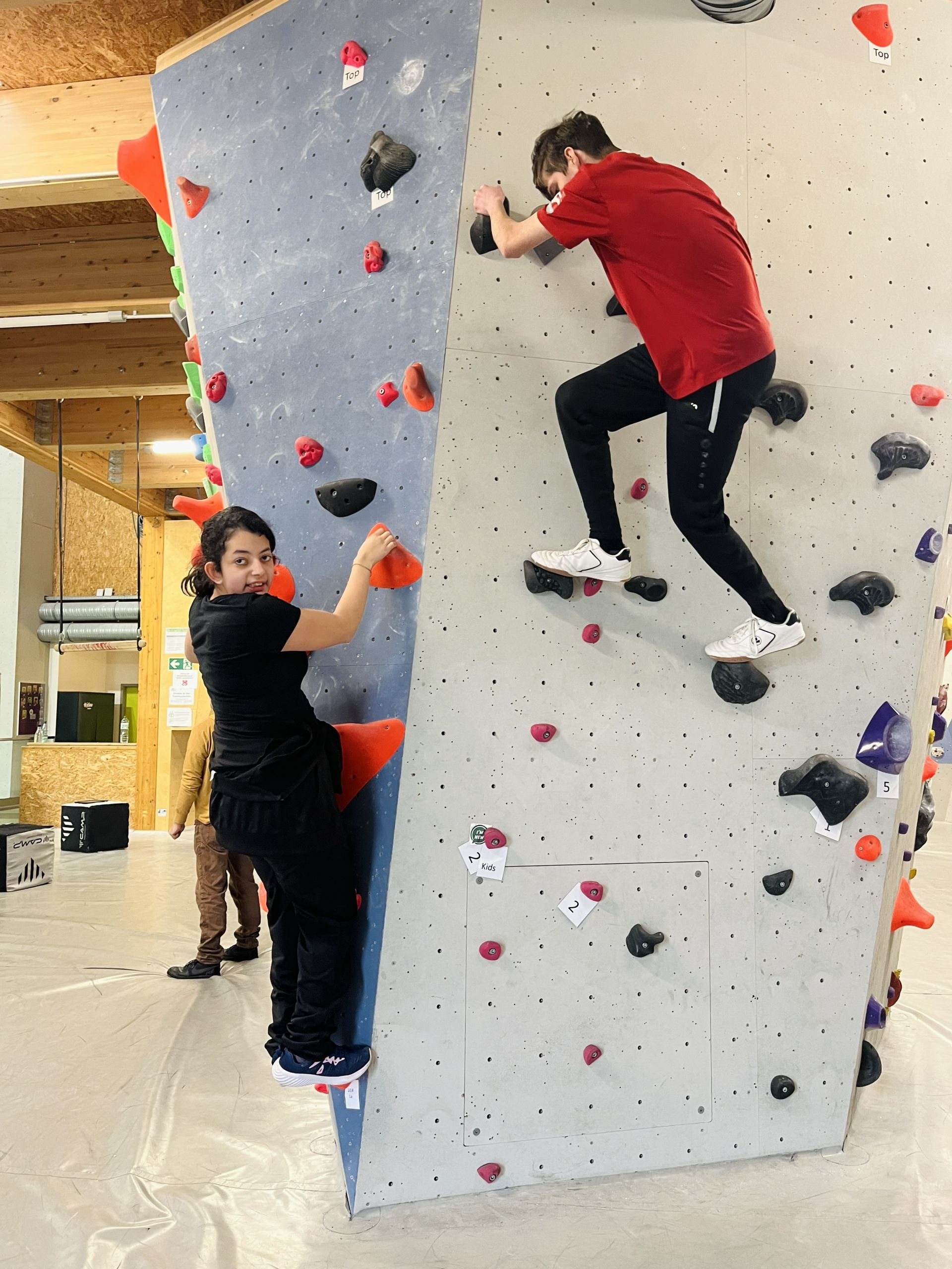 Mit viel Mut, Neugier und Teamgeist probierten sich die Jugendlichen zunächst beim Bouldern aus. Ohne Seil, aber gut abgesichert durch dicke Matten, wurden erste Routen erkundet, Griffe getestet und eigene Grenzen überwunden. Schnell zeigte sich: Klettern erfordert nicht nur Kraft, sondern auch Vertrauen und Durchhaltevermögen.